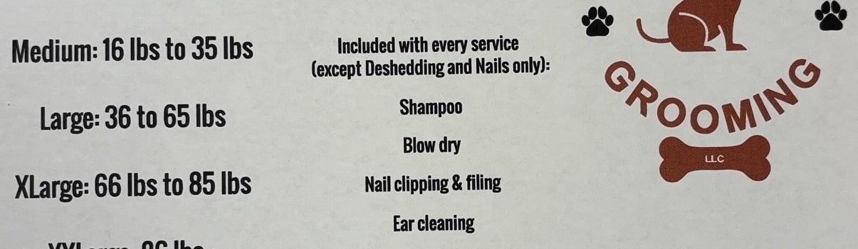You’re in the right place if you would like your dog pampered and looking great. Call or text or email us and we can set up your appointment today : New client discount offered