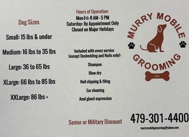 Local mobile dog grooming servicing all of the NWA surrounding areas